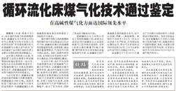 2022年作為常壓循環(huán)流化床煤氣化制合成氣技術(shù)的典型案例通過石化聯(lián)合會鑒定,鑒定委員會一致認(rèn)為,該技術(shù)總體達(dá)到國際先進(jìn)水平,在高堿性煤氣化方面達(dá)到國際領(lǐng)先水平,對新疆高堿煤開發(fā)和發(fā)展當(dāng)?shù)亟?jīng)濟(jì)具有積極意義